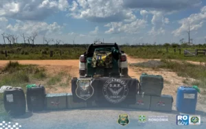 Uma operação conjunta realizada nesta sexta-feira (22/08) entre a Polícia Federal, a Polícia Militar de Rondônia (PM/RO) por meio do 10º Batalhão de Polícia Militar (10º BPM) e Batalhão de Fronteira (BPFRON), a Polícia Militar do Mata Grosso por meio do Grupo Especial de Fronteira (GEFRON), apreenderam aproximadamente 500 quilos de cocaína e skunk em uma área rural próxima ao município de Rolim de Moura/RO.