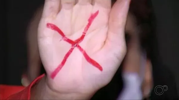 O X vermelho desenhado na palma da mão faz parte de uma campanha mundial para amparar mulheres em situação de violência doméstica — Foto: Reprodução/Tv Tem