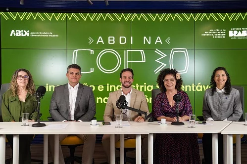 Participaram do evento a diretora de Economia Sustentável e Industrialização da ABDI, Perpétua Almeida; a secretária de Economia Verde do Ministério do Desenvolvimento, Indústria, Comércio e Serviços (MDIC), Julia Cruz; e a coordenadora do projeto ABDI na COP30, Neide Freitas. A mediação foi do jornalista Daniel Adjuto.