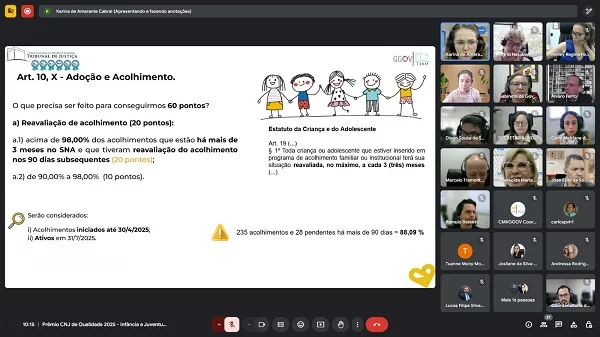 Os resultados e as metas foram debatidos por diversos setores durante a reunião do Prêmio CNJ de Qualidade, realizada em 25/02/2025, com o tema “Infância e Juventude. Oportunidade em que os diversos setores do Tribunal de Justiça de Rondônia (TJRO) reafirmaram o compromisso com a proteção e garantia dos direitos de crianças e adolescentes.