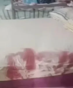 Foi a própria mulher quem chamou a polícia. Dentro da casa, foi possível observar um rastro de sangue que se estendia do local onde a vítima estava até o quarto, sugerindo que ele se movimentava pela casa após ser ferido.