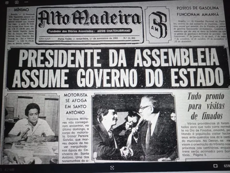 PORTO VELHO — 1.11.24 – BOM DIA! RONDÔNIA: 1946 – Resultado sobre a proposta de nome do futuro Território: Alto Madeira, 672 votos; Madeira-Mamoré 134; Território do Madeira, 24. 1967 – O prefeito Moacyr Assumpção inaugura o novo cemitério de Porto Velho. 1983 – Com o governador Jorge Teixeira de férias em janeiro, o deputado José Bianco, presidente da Assembleia Legislativa, ficará um mês à frente do Estado. (Veja em FOTO DO DIA).