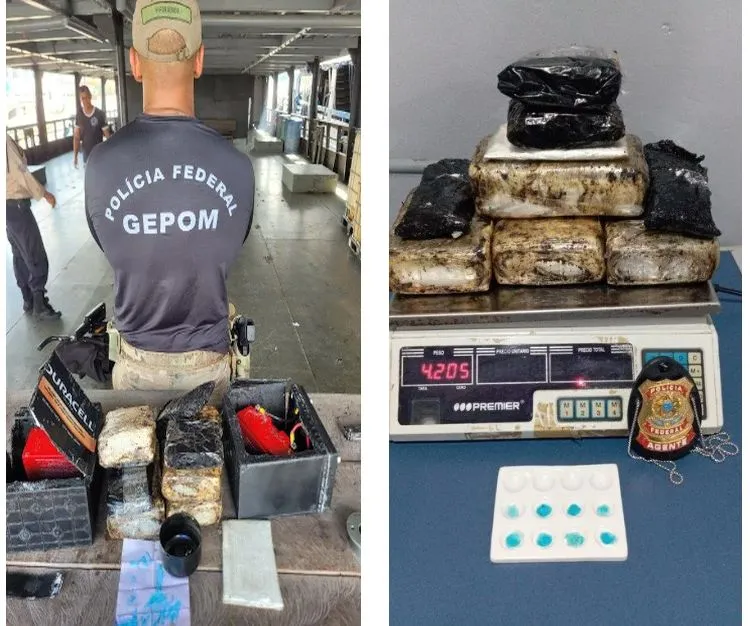 A Polícia Federal apreendeu, nesta terça-feira (12/11), 4 kg de cocaína durante fiscalização de rotina em embarcação comercial de passageiros, do tipo recreio, no porto Porto Brás, no município de Tabatinga.