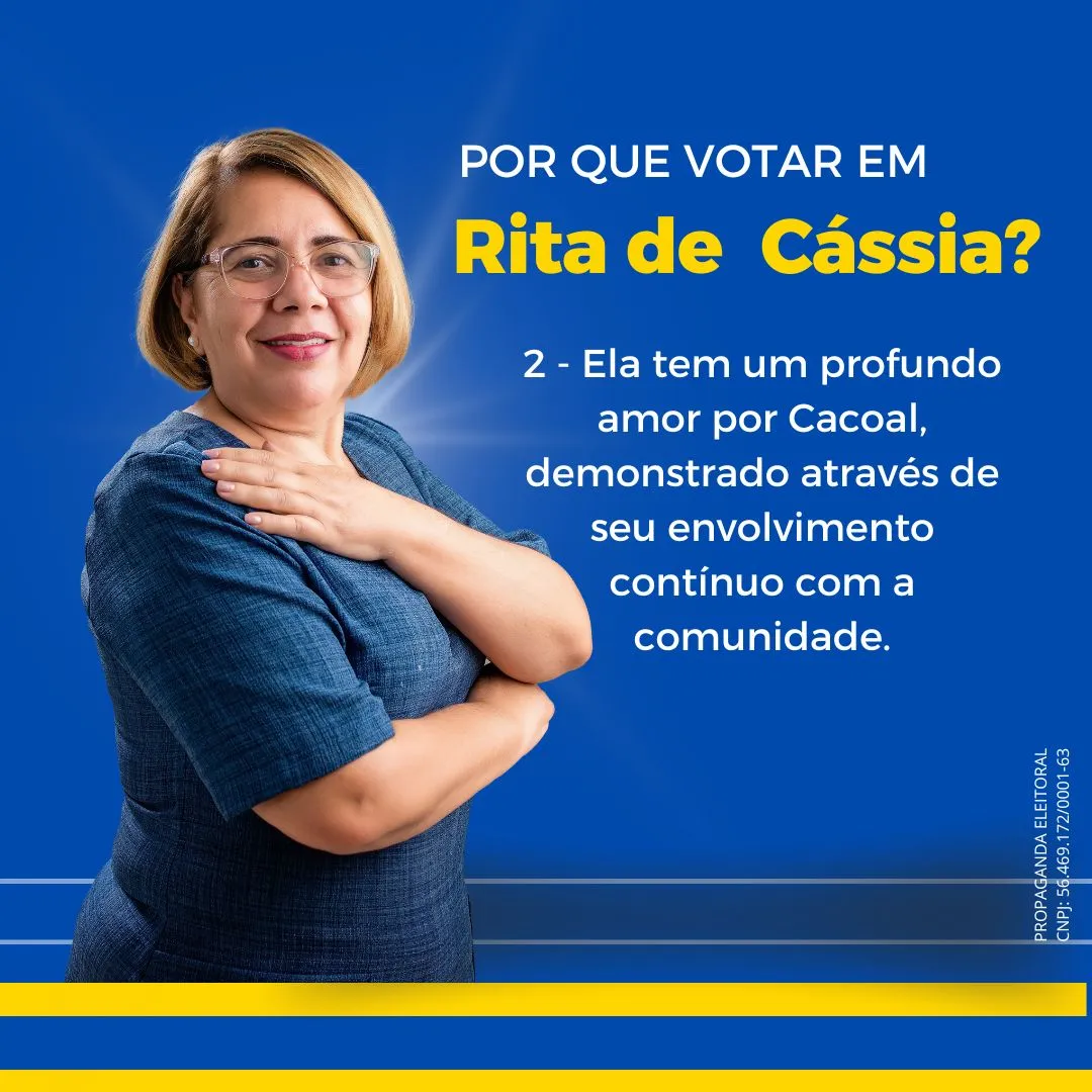 Por fim, Rita de Cássia reafirmou seu compromisso em continuar dedicando parte de seu tempo e energia para auxiliar a comunidade. “Mesmo sem ocupar um cargo eletivo, seguirei minha jornada de trabalho social, como sempre fiz. Estarei ao lado da sociedade, contribuindo para que as pessoas que mais precisam de suporte social sejam acolhidas e ouvidas. Continuarei atuando em favor de nossa comunidade, sempre.”