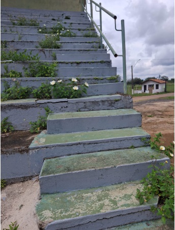 A nossa reportagem também constatou o apodrecimento geral das madeiras, as péssimas condições dos banheiros com buracos expostos das fossas sépticas e filtrações de água por toda a estrutura.